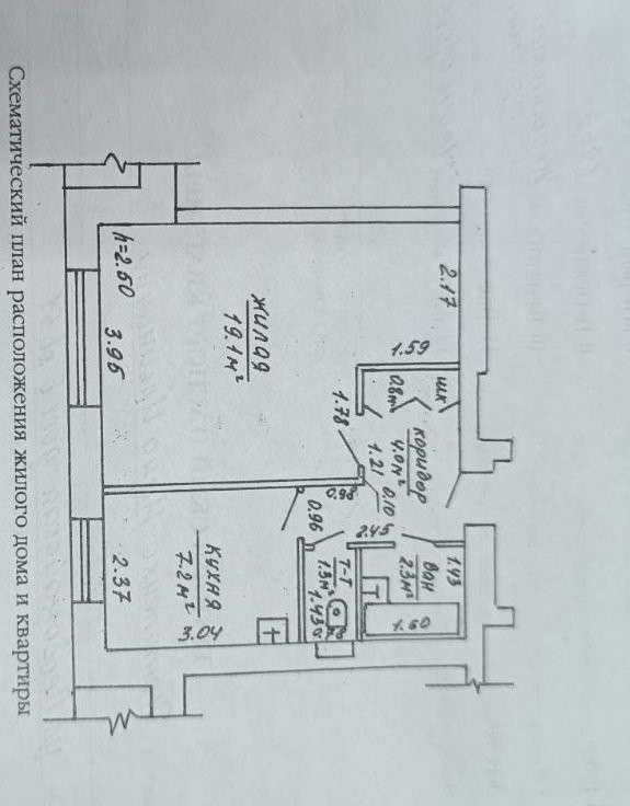 Общая площадь 34,7 м2, жилая площадь 19,1м2, кухня 7,2м2.
