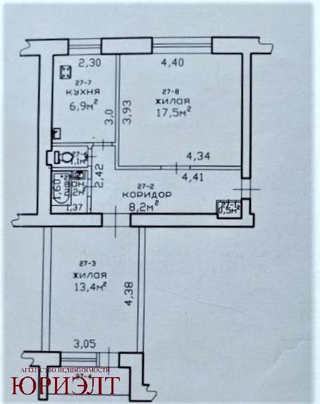 Продается 2-комнатная квартира в кирпичном доме. Общая площадь 49,8 м2, жилая 30,9 м2, кухня 6,9 м2. Комнаты раздельные 17,5 м2 и 13,4 м2. Просторный коридор 8,2 м2.