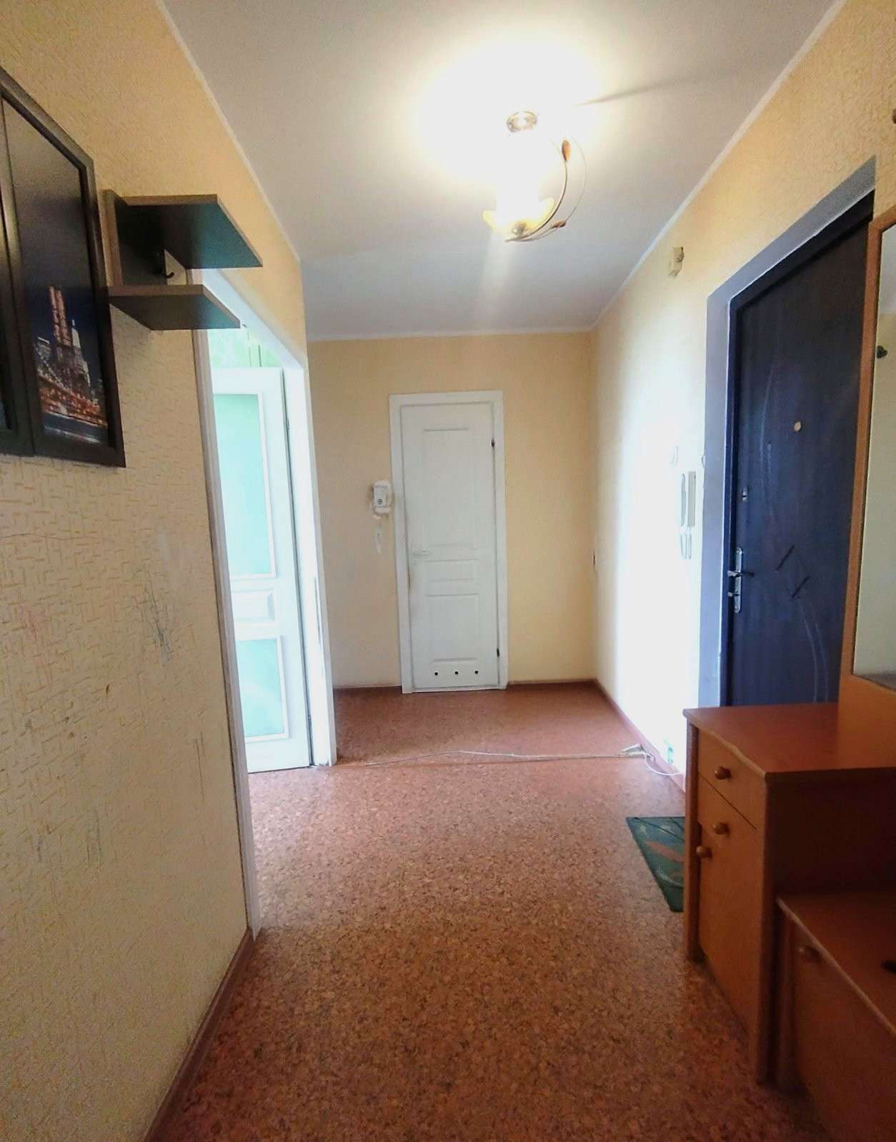 В квартире металлическая входная дверь, межкомнатные двери – стандартные. Напольное покрытие – линолеум и плитка. Окна в квартире ПВХ (дерево).