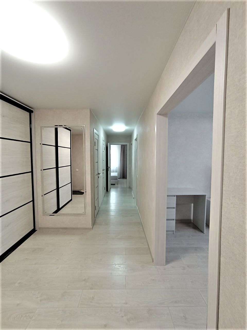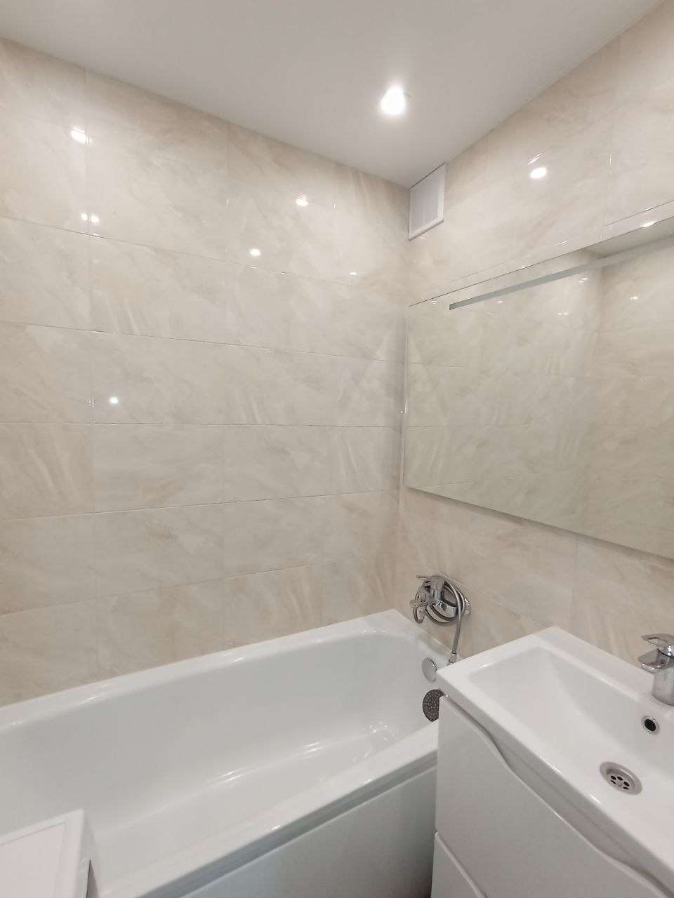 В квартире проведен качественный ремонт: современная плитка в ванной и санузле, гигиенический душ и умывальник в санузле, качественный ламинат в комнатах, натяжные потолки с диодным освещением. Заменена вся электропроводка на медную с УЗО, сделана стяжка пола.