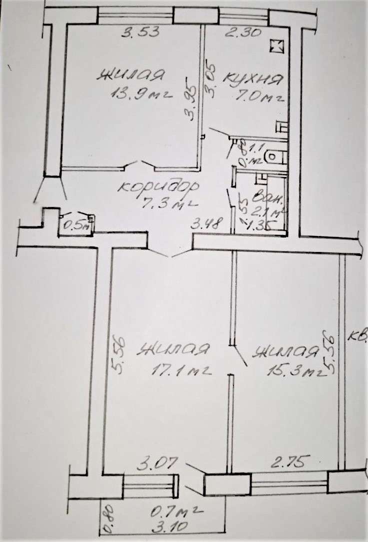 В квартире 3 просторные комнаты, 1 из них проходная. В доме прошёл капремонт в 2024г. В квартире косметический ремонт. Везде установлены окна ПВХ, двойная входная дверь (одна металлическая, вторая деревянная), новые межкомнатные двери. На полу в комнатах ухоженный паркет, в санузле плитка. Установлена душевая кабина, вся сантехника в очень аккуратном состоянии. На кухне стены выложены плиткой, на полу - линолеум. Балкон обшит сайдингом и также остеклен рамами ПВХ. Натяжной потолок в комнатах. После продажи остается кухонный гарнитур, встроенные шкафы. За квартирой закреплен подвал.