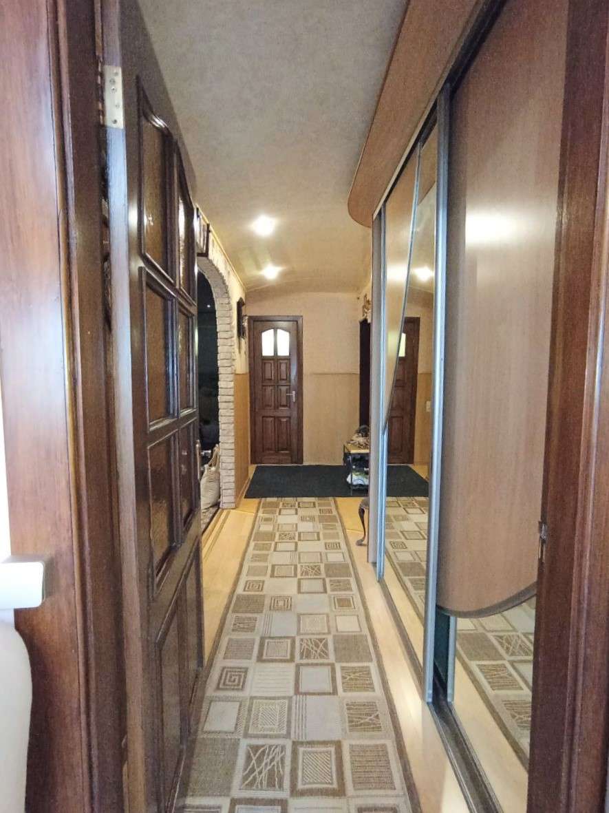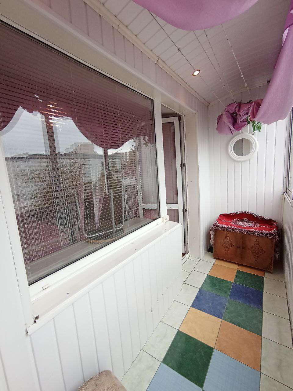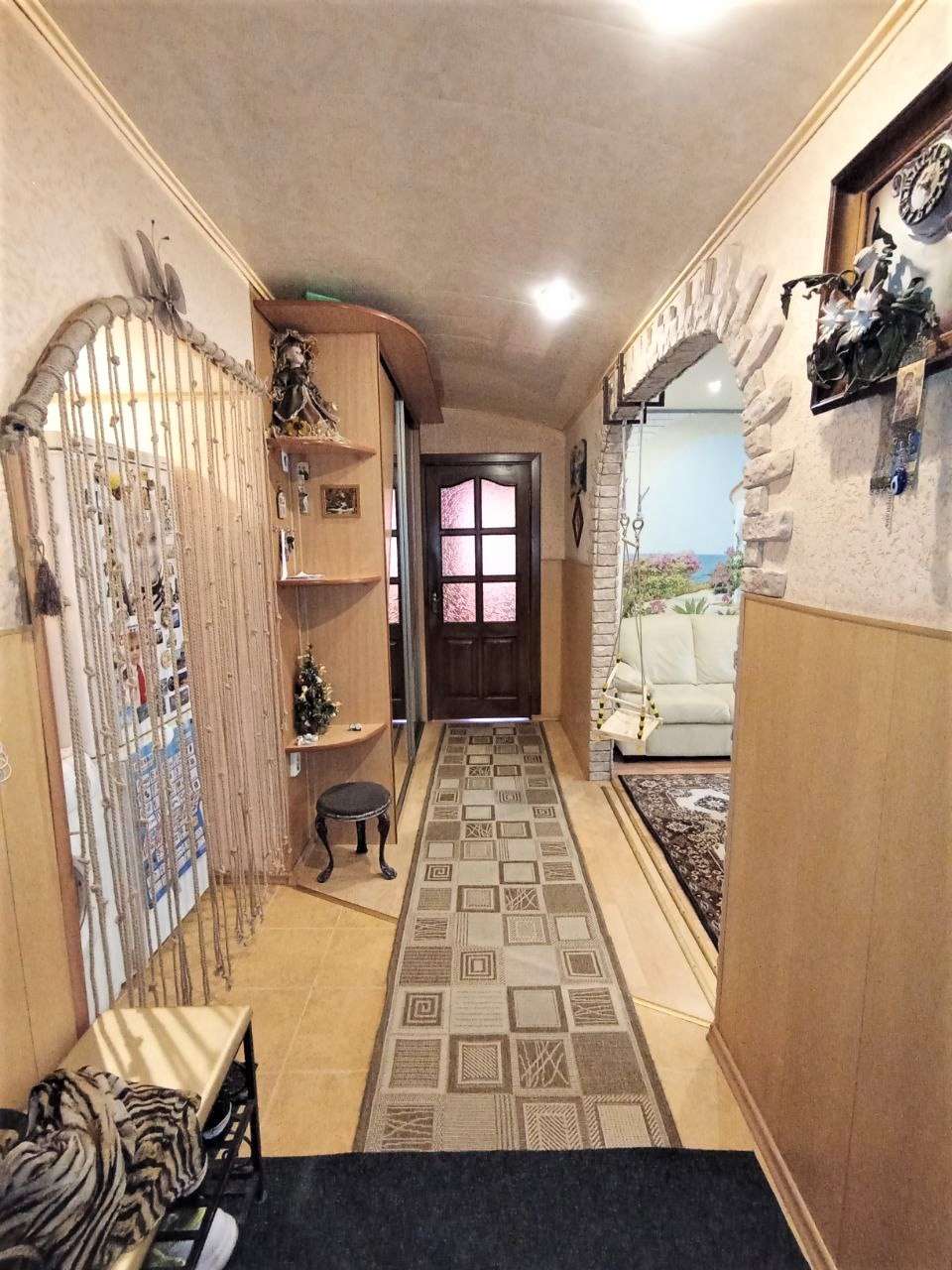 В квартире 3 комнаты, 1 из них проходная. В квартире выполнен косметический ремонт. Стены в комнатах и коридоре оформлены декоративной штукатуркой и окрашены моющейся краской. Везде установлены окна ПВХ, металлическая входная дверь, межкомнатные двери - массив. Натяжные потолки в комнатах. На полу в комнатах уложен ламинат, на кухне, в санузле и частично в коридоре - плитка. Установлен бойлер, счетчики, вся сантехника в аккуратном состоянии. Лоджия утеплена, обшита сайдингом, на полу уложена плитка и установлены рамы ПВХ. В коридоре вместительная ниша, в которой помещаются стиральная машина и холодильник. Тамбур на 3 квартиры, в нем достаточно места для велосипедов, колясок и т.п. Также за квартирой закреплен оборудованный подвал.