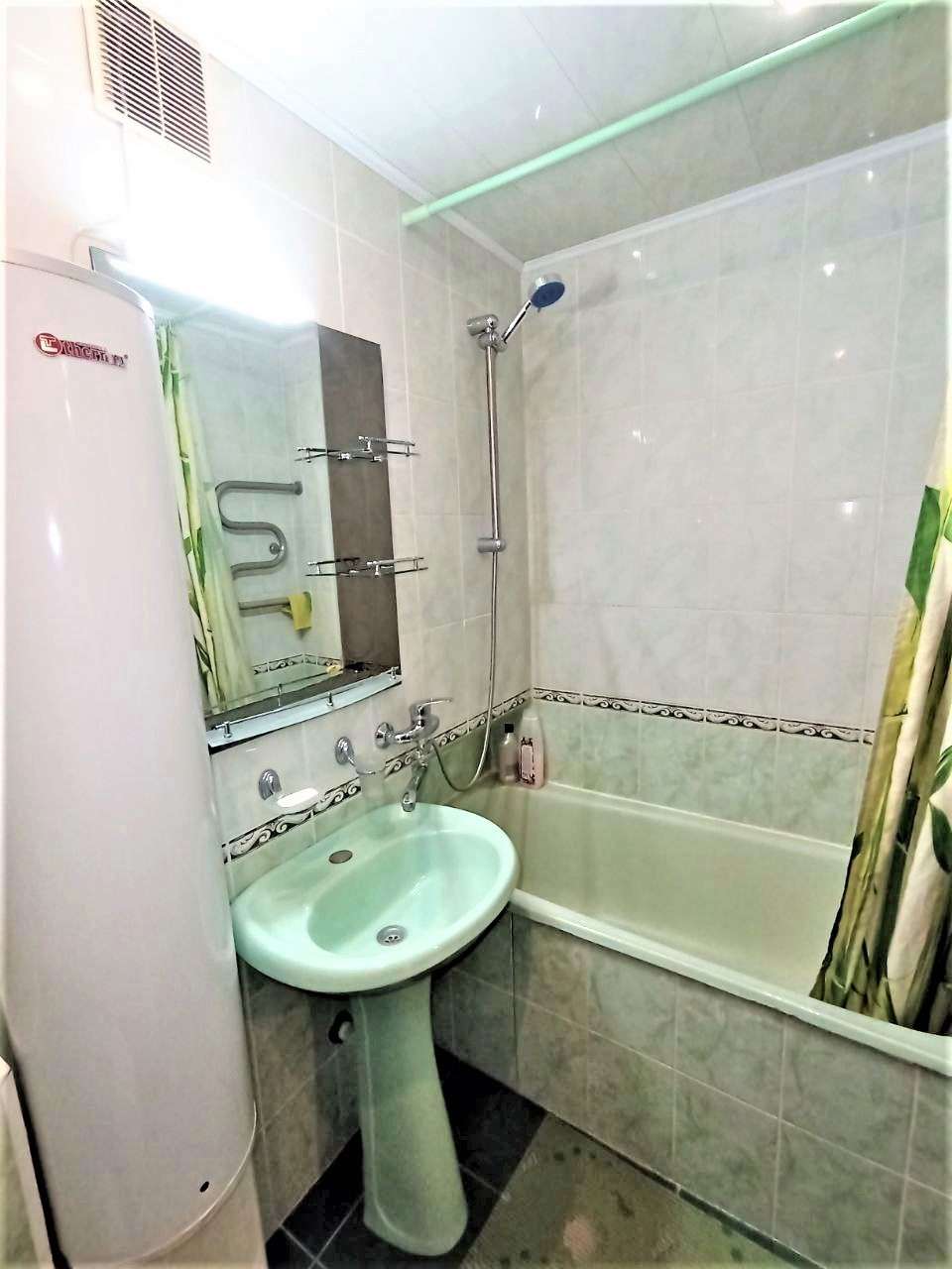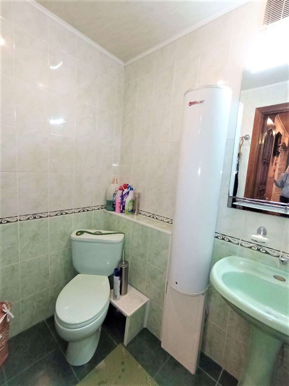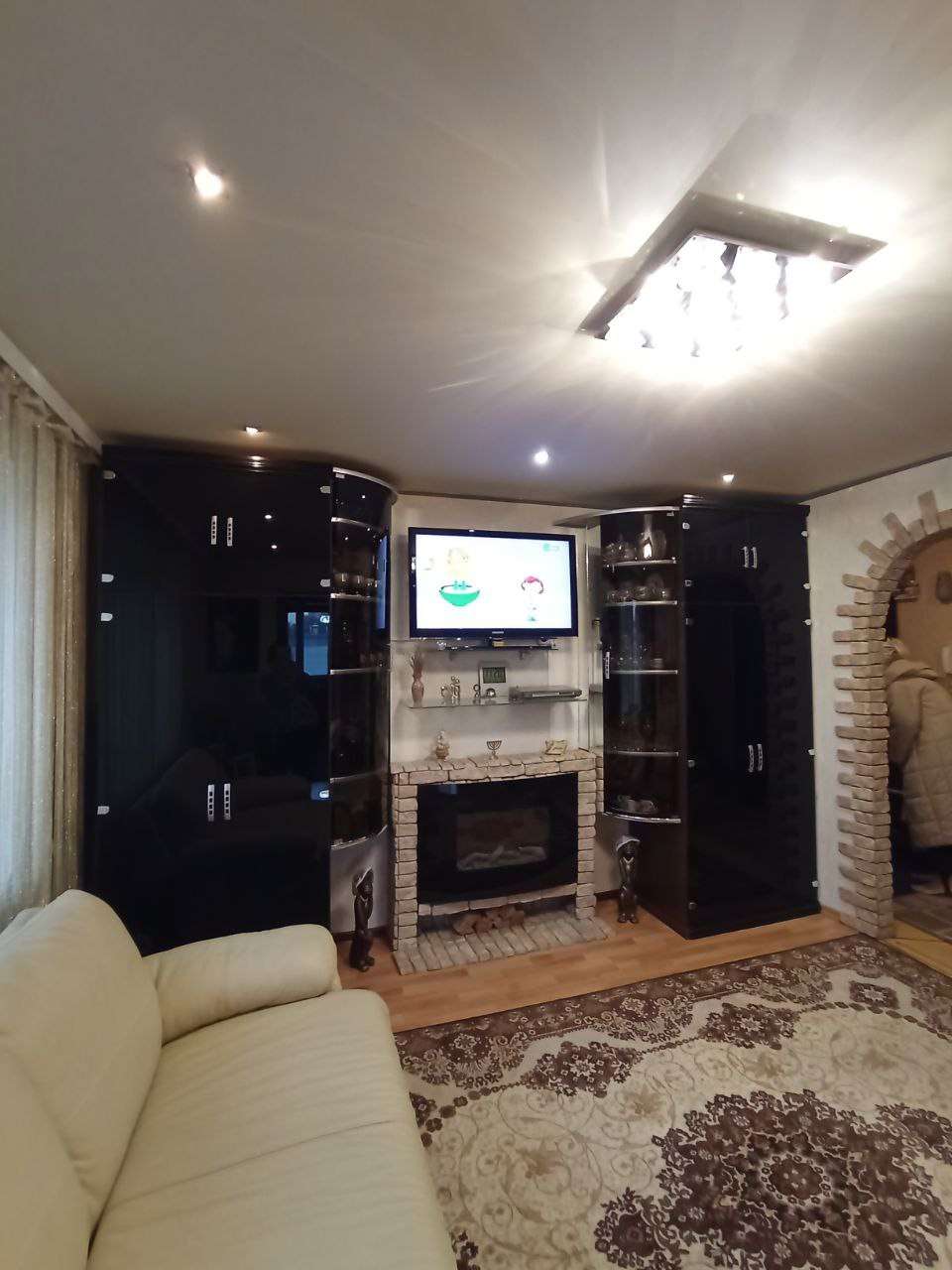 В квартире 3 комнаты, 1 из них проходная. В квартире выполнен косметический ремонт. Стены в комнатах и коридоре оформлены декоративной штукатуркой и окрашены моющейся краской. Везде установлены окна ПВХ, металлическая входная дверь, межкомнатные двери - массив. Натяжные потолки в комнатах. На полу в комнатах уложен ламинат, на кухне, в санузле и частично в коридоре - плитка. Установлен бойлер, счетчики, вся сантехника в аккуратном состоянии. Лоджия утеплена, обшита сайдингом, на полу уложена плитка и установлены рамы ПВХ. В коридоре вместительная ниша, в которой помещаются стиральная машина и холодильник. Тамбур на 3 квартиры, в нем достаточно места для велосипедов, колясок и т.п. Также за квартирой закреплен оборудованный подвал.