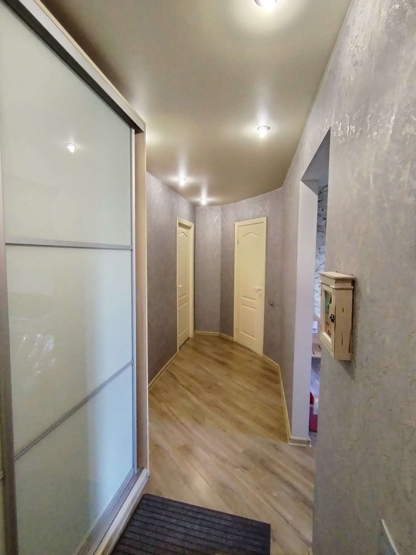 В квартире выполнен современный ремонт: установлены окна ПВХ, фасад дополнительно утеплён. Совмещенный санузел облицован кафельной плиткой, с узаконенной перепланировкой. По всей квартире уложен качественный ламинат, потолки в комнатах натяжные, кухня сайдинг.