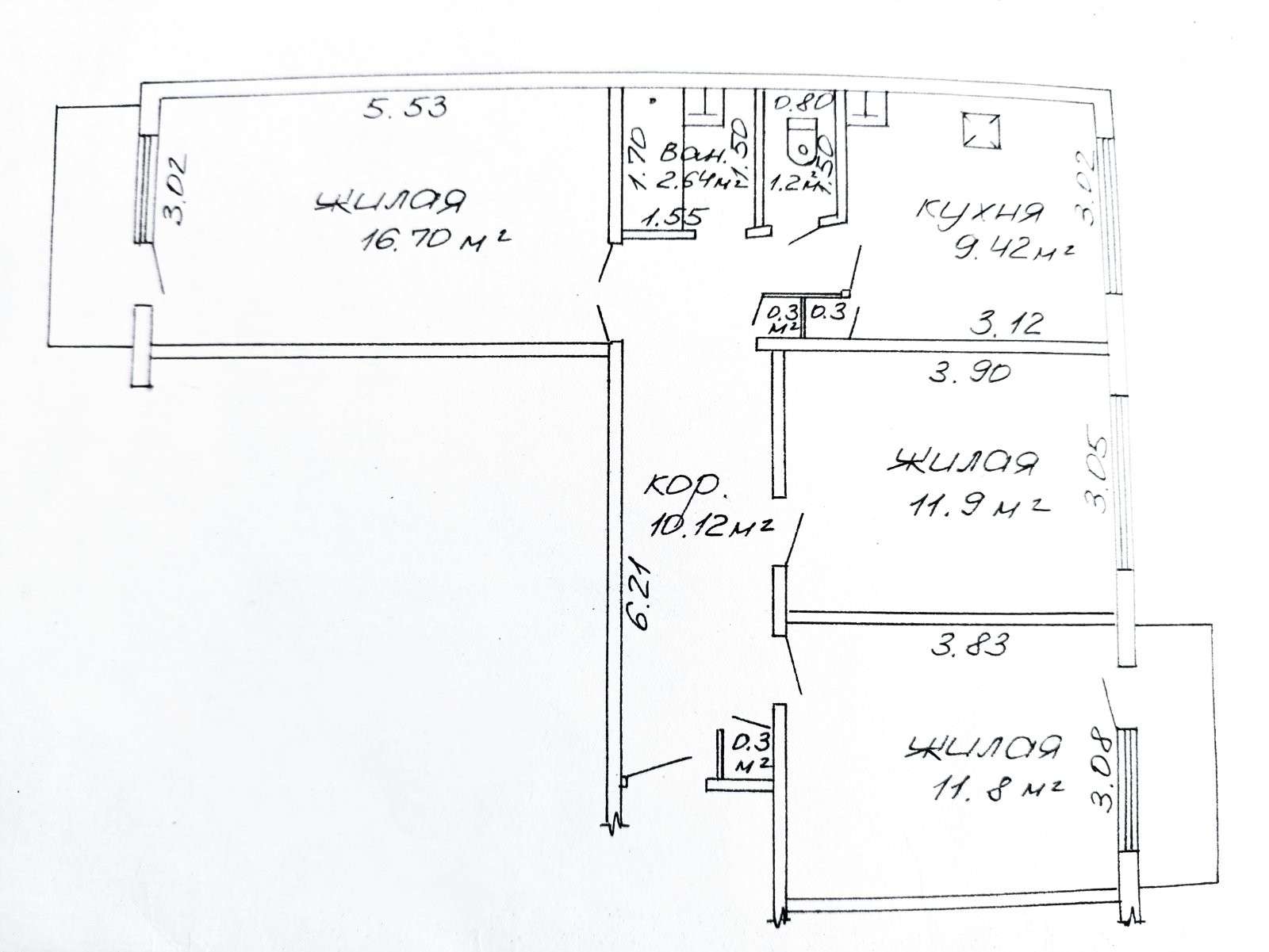 Общая площадь квартиры - 65 м.кв. Все комнаты раздельные, а характер квартиры - распашной (окна выходят на противоположные стороны дома).