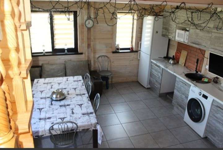 В доме собственная вода (скважина+бойлер), канализация, каминная топка печи бани на кухне, пол с подогревом на первом этаже, электрические конвекторы на втором. Окна ПВХ стеклопакеты, полностью мебелирован и оснащён бытовой техникой: холодильник, электрическая плита, микроволновая печь, стиральная машина, телевизор, wi-fi модем, система видеонаблюдения.
