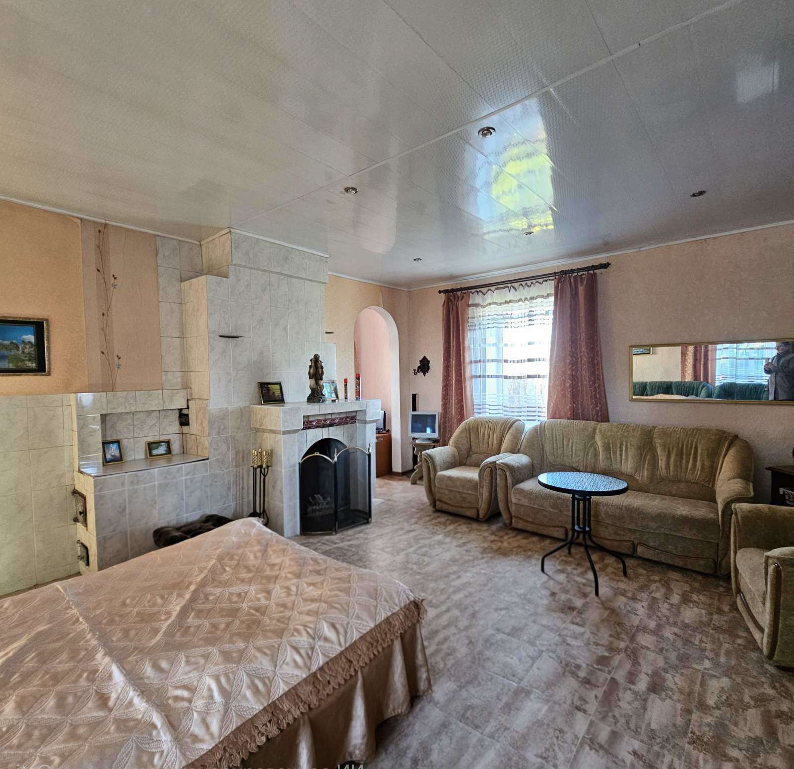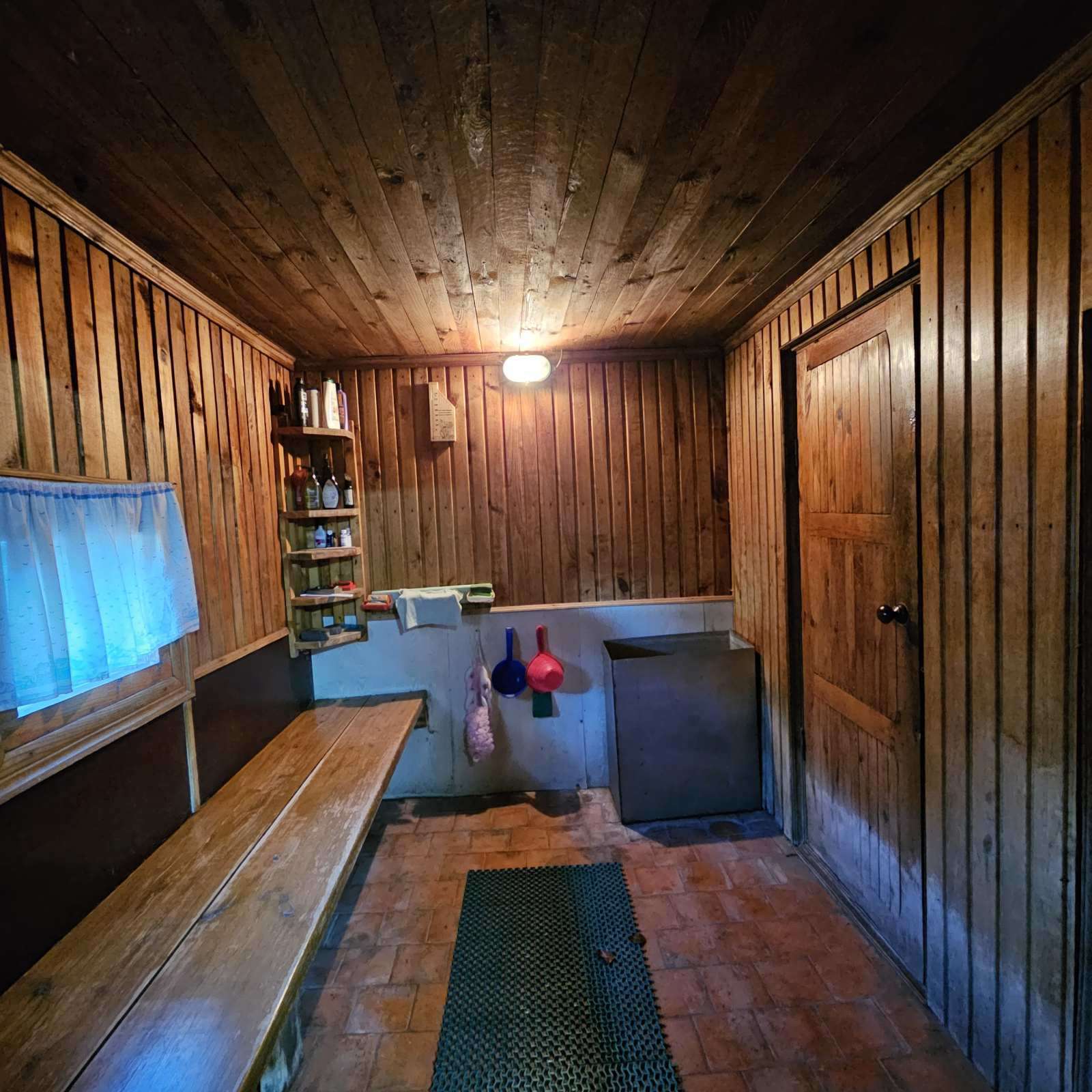 На участке имеется баня, живописный пруд, беседка, большой гараж, застеклённая теплица, помещение для хранения хоз. инвентаря, две скважины. В доме есть холодная и горячая вода, печное отопление и камин.
