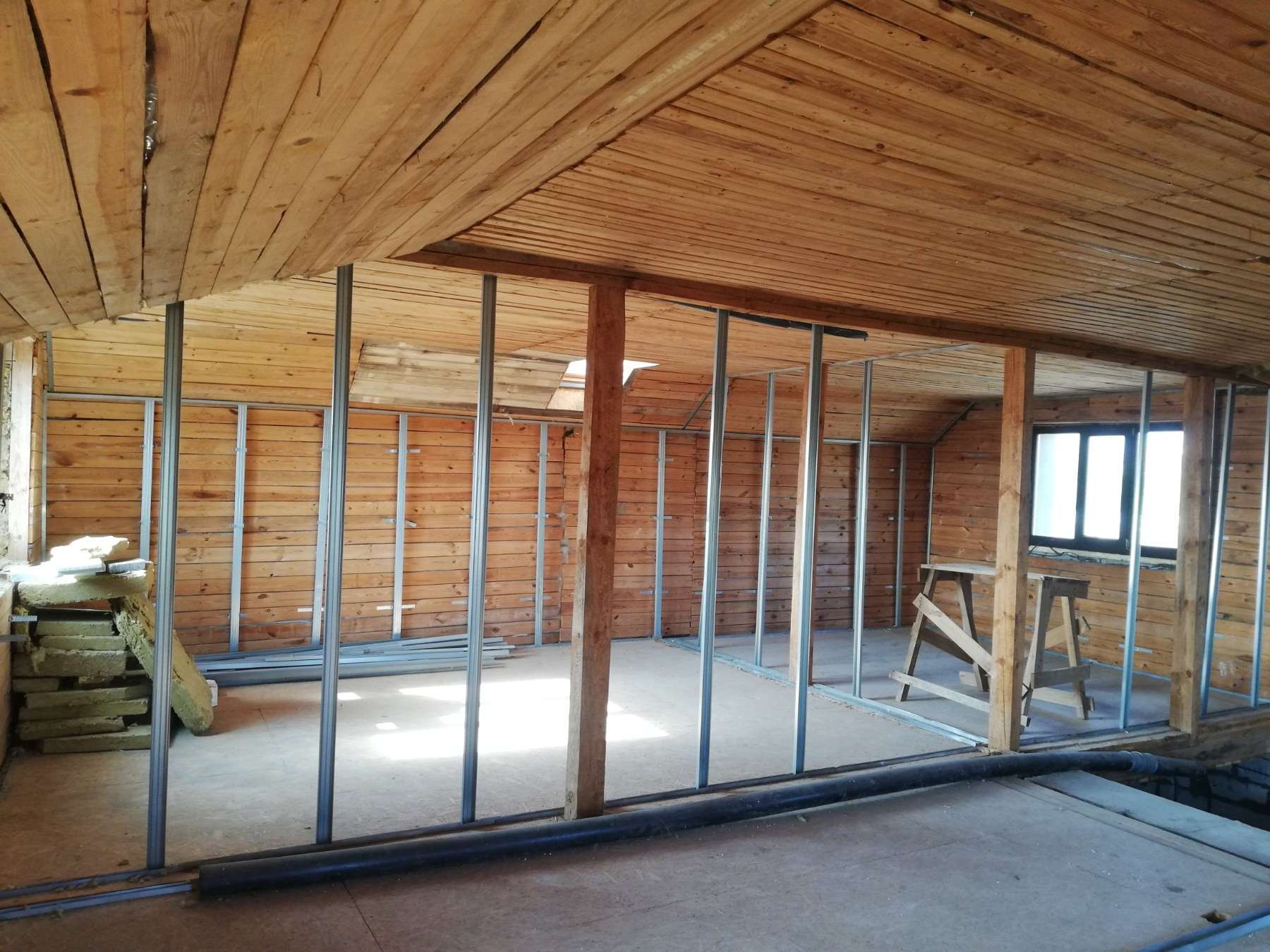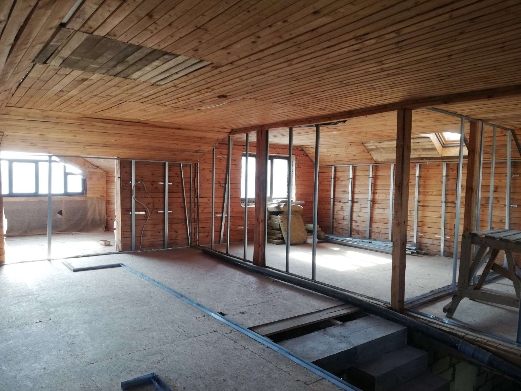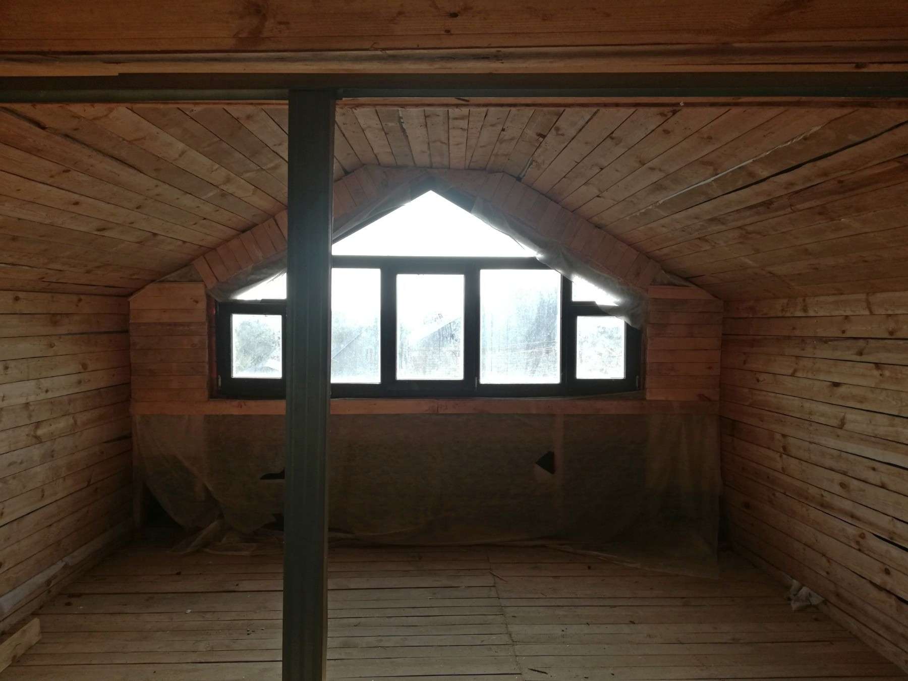 По всему дому установлены деревянные стеклопакеты, на втором этаже - мансардные окна.