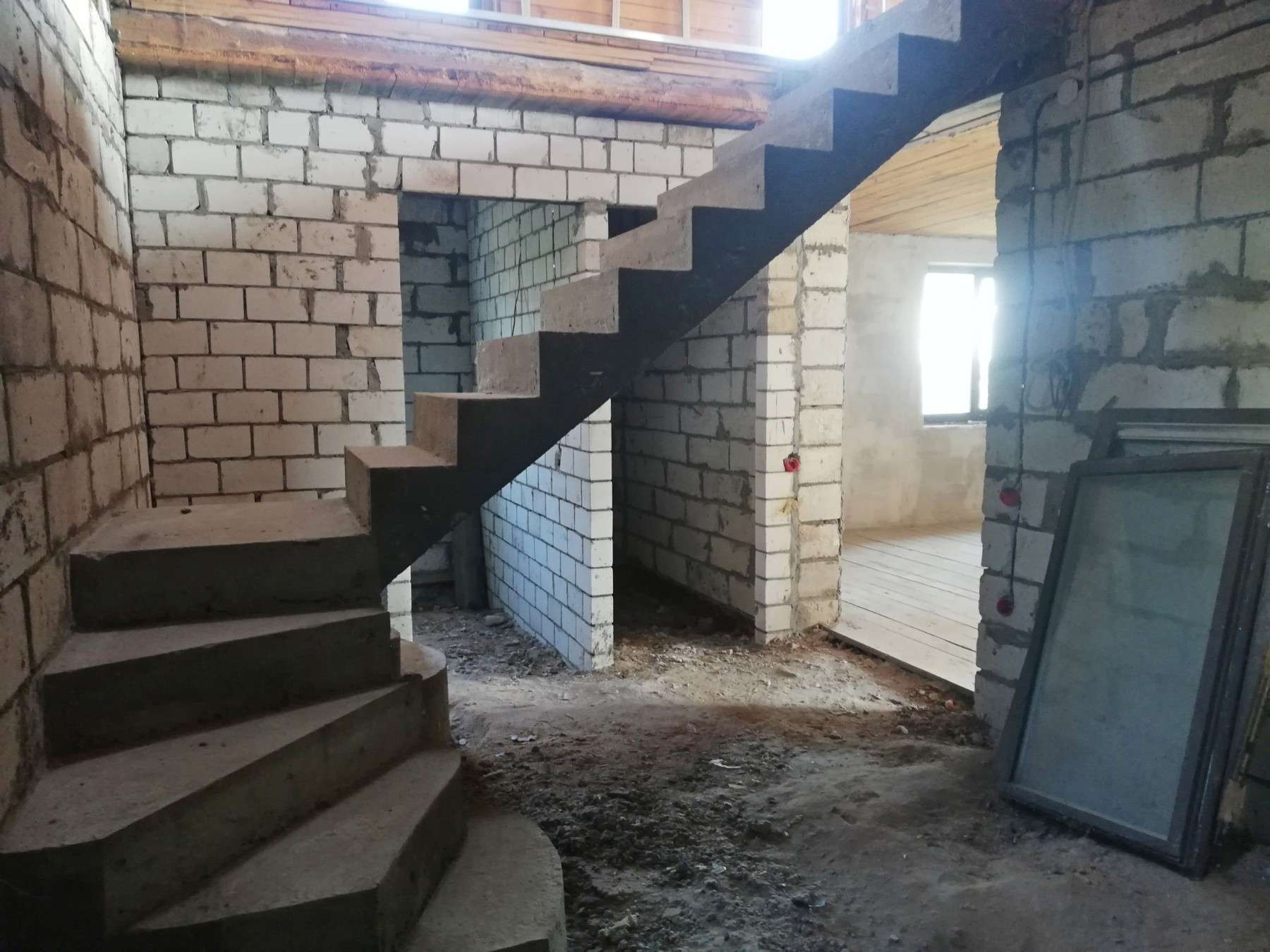 На 2-й этаж выстроена бетонная лестница.