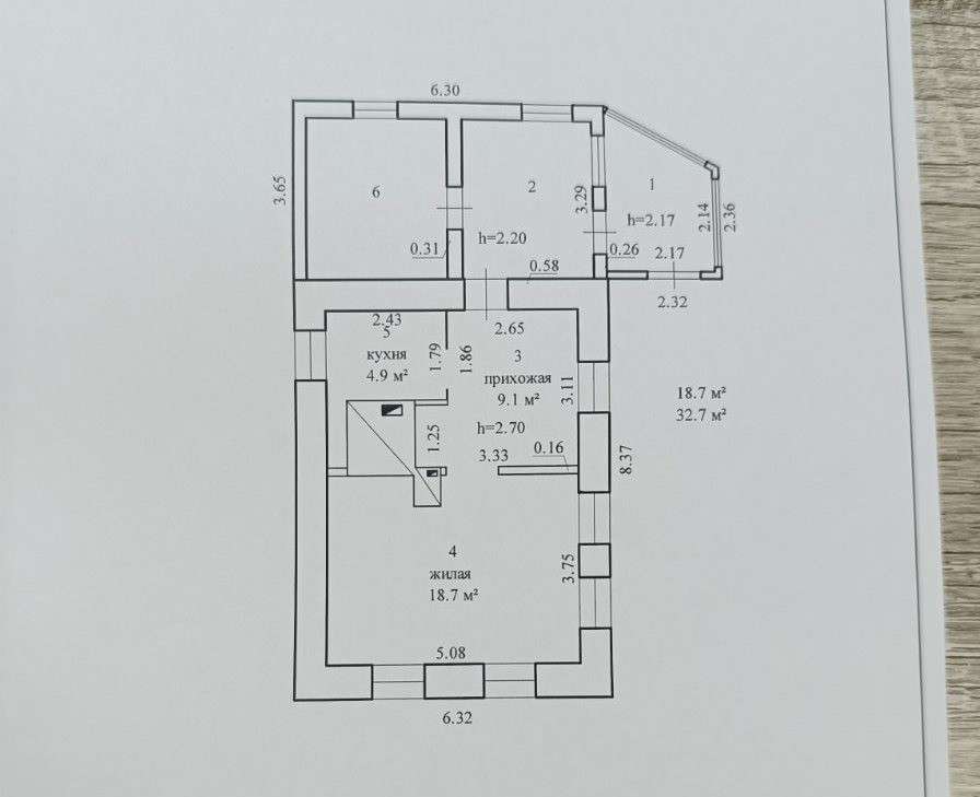 Общая площадь дома составляет 32,7 м², жилая 18,7 м².