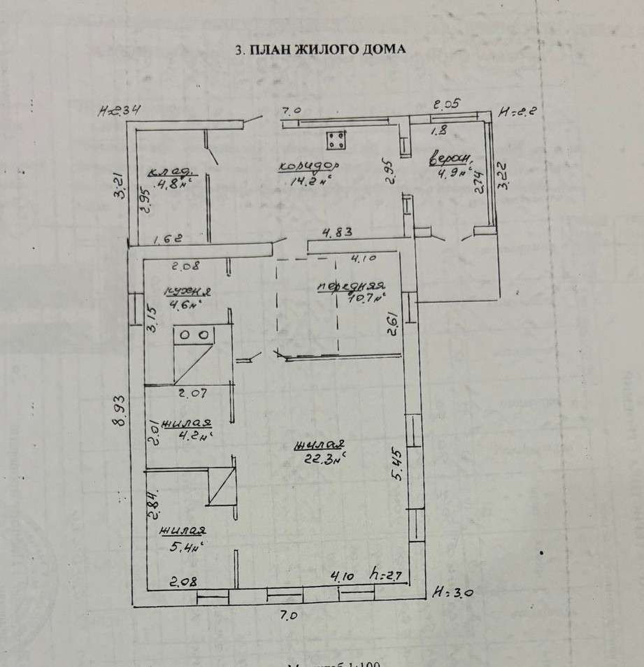 Общая площадь дома– 48,1 кв.м., жилая площадь составляет 32,1 кв.м, кухня -10,7 кв.м.