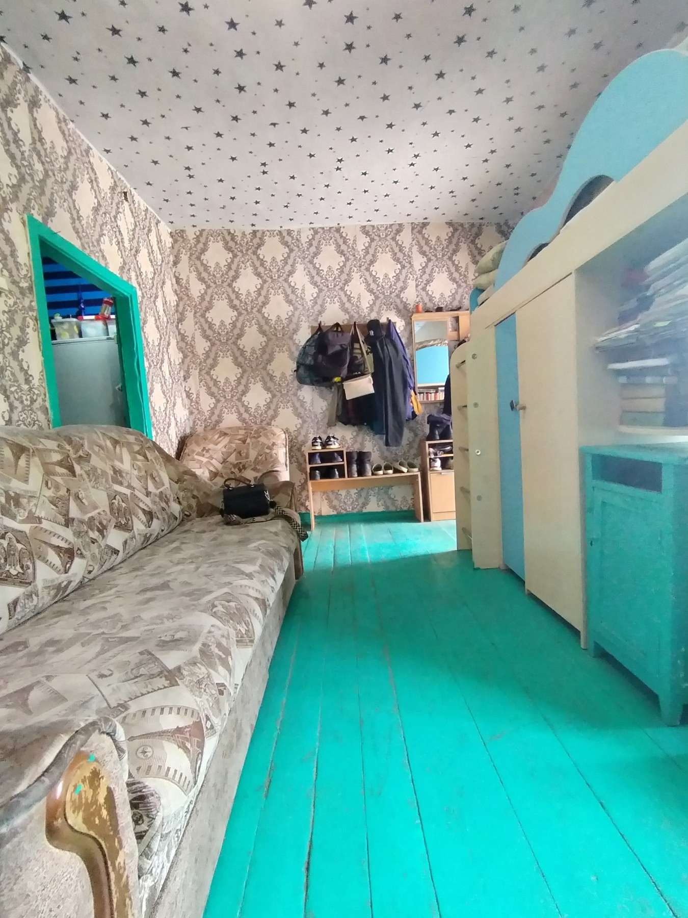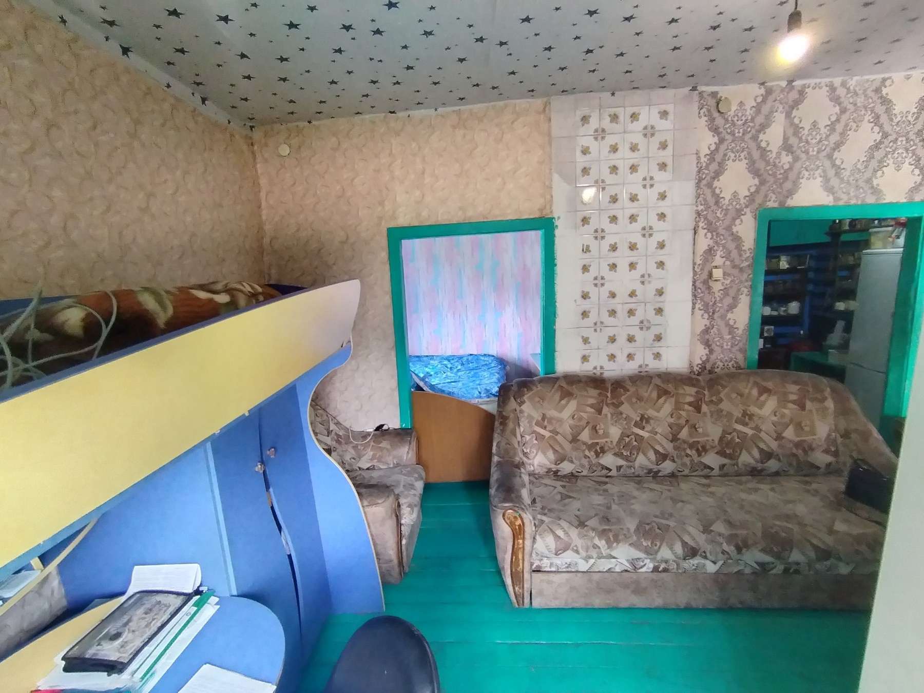 Продается половина дома по адресу г. Рогачев ул. Димитрова. Общая площадь составляет 50,4 м2, из которых жилая площадь — 27, 7 м2, кухня — 13, 5 м2. Дом был построен в 1965 году, материал стен деревянный.